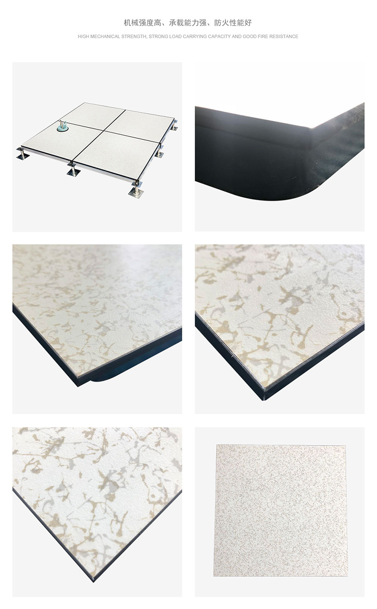 全鋼防靜電地板為全鋼組件,分有邊、無(wú)邊、微邊(三種邊處理方式)。底面采用SPCC深沖冷軋板拉伸成型鋼板厚度(0.4~1.5mm),球窩狀結(jié)構(gòu),增加地板的機(jī)械荷載強(qiáng)度。面板采用硬質(zhì)SPCC鋼板(0.5~2.0mm),上下經(jīng)過(guò)點(diǎn)焊焊接成型,切邊沖孔后,經(jīng)防銹處理,環(huán)氧樹(shù)脂粉末靜電噴涂后,中間填充發(fā)泡水泥(可以根據(jù)客戶需求發(fā)泡不同重量),再經(jīng)過(guò)日曬養(yǎng)護(hù)后形成穩(wěn)定的承載結(jié)構(gòu)。地板上表層粘貼防火板(HPL)/復(fù)合PVC/ 通體PVC/陶瓷地磚等不同材質(zhì)的裝飾表層,達(dá)到產(chǎn)品花色的多樣性、可以根據(jù)客戶需求個(gè)性化定制產(chǎn)品。搭配聯(lián)網(wǎng)支架、支架、螺釘組裝后,定位聯(lián)接更加準(zhǔn)確、精度可靠。